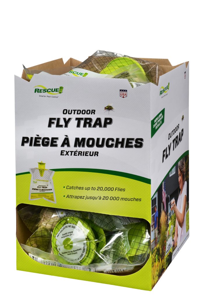 The RESCUE!® Disposable Fly Trap is intended for use outdoors. It will help control flies outside and keep them from getting indoors. We recommend hanging the trap around 20 feet away from any outdoor living spaces.
