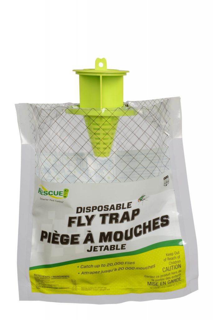 The RESCUE!® Disposable Fly Trap is intended for use outdoors. It will help control flies outside and keep them from getting indoors. We recommend hanging the trap around 20 feet away from any outdoor living spaces.